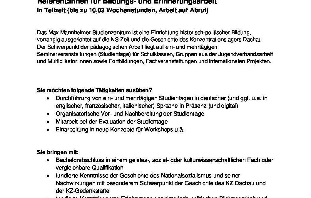 Ausschreibung_Referent_innen Bildungs- und Erinnerungsarbeit